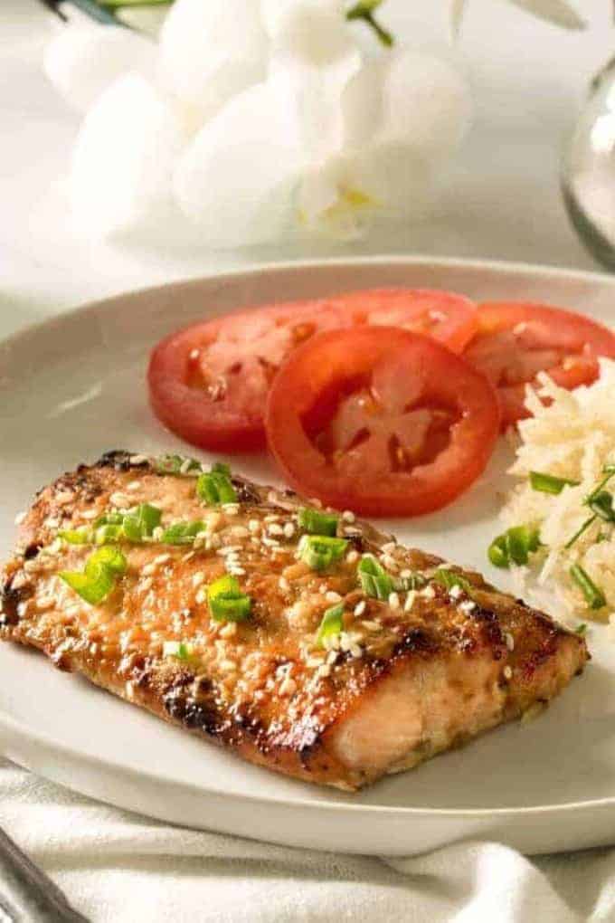 This Instant Pot Salmon with Orange Ginger Sauce is a quick, low carb salmon dinner with tender, perfectly cooked fillets glazed in a sweet and savory sauce made from marmalade, dark soy sauce, ginger, and garlic. Using an easy pot in pot method, this pressure cooker salmon is ready in about 30 minutes and tastes like a takeout-style Asian glazed salmon at home.