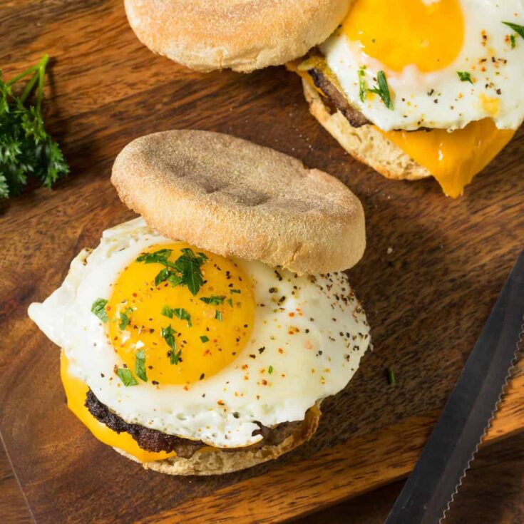 This Copycat Sausage McMuffin recipe makes a hearty homemade breakfast sandwich with perfectly browned sausage patties, fluffy eggs, and melty American cheese tucked inside toasted English muffins. Ready in about 20 minutes, these easy Sausage McMuffins are perfect for meal prep and taste even better than the fast-food original.
