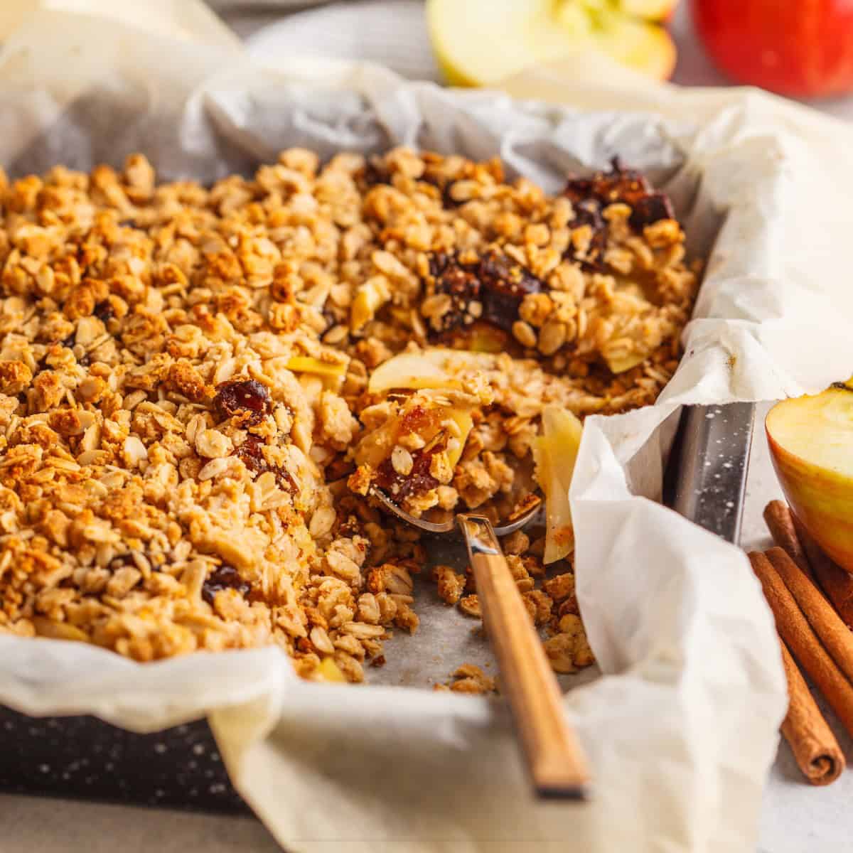 Pour the wet ingredients into the dry ingredients and mix until everything is evenly incorporated. Transfer the mixture to the prepared baking dish and spread it out evenly. Bake in the preheated oven until the oatmeal is golden brown and set.